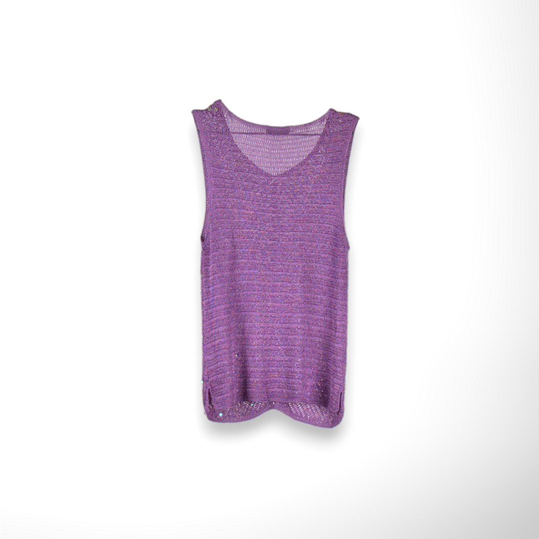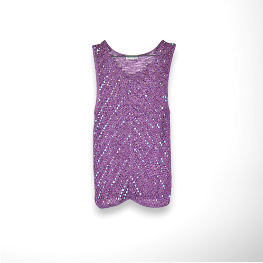 Débardeur vintage à sequins par Julie Gerland. Ce top en crochet, léger et extensible, incarne le style des années 1990 et l’ambiance Ibiza. Il est décoré de sequins irisés pour un effet sirène irrésistible.