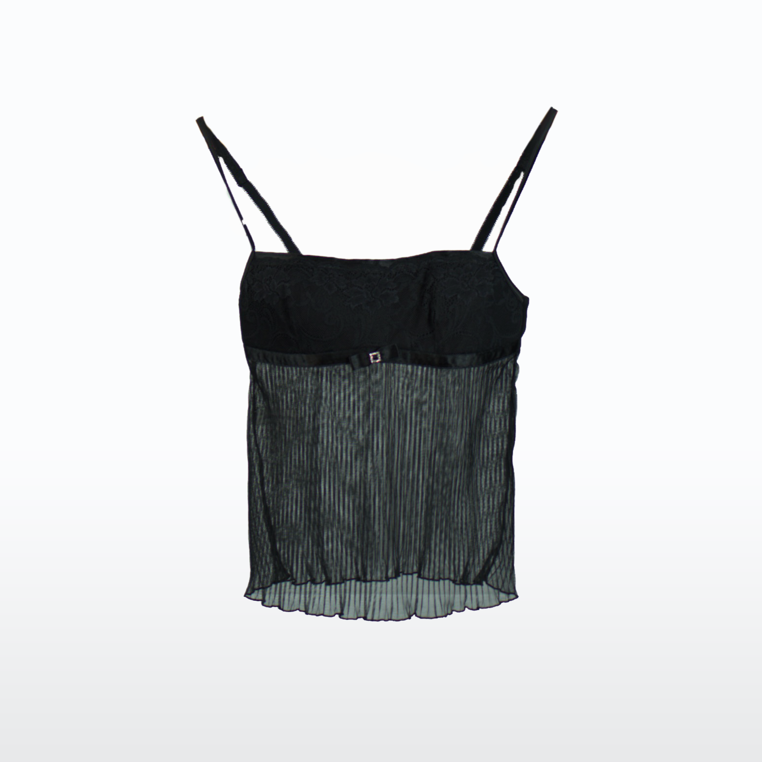 Ce caraco Pierre Cardin allie élégance et confort avec sa brassière à décolleté empire en dentelle opaque, associée à un tissu plissé noir transparent. Parfait pour un style élégant aussi bien à la maison qu’en ville, ce débardeur procure un confort optimal tout en sublimant votre silhouette.