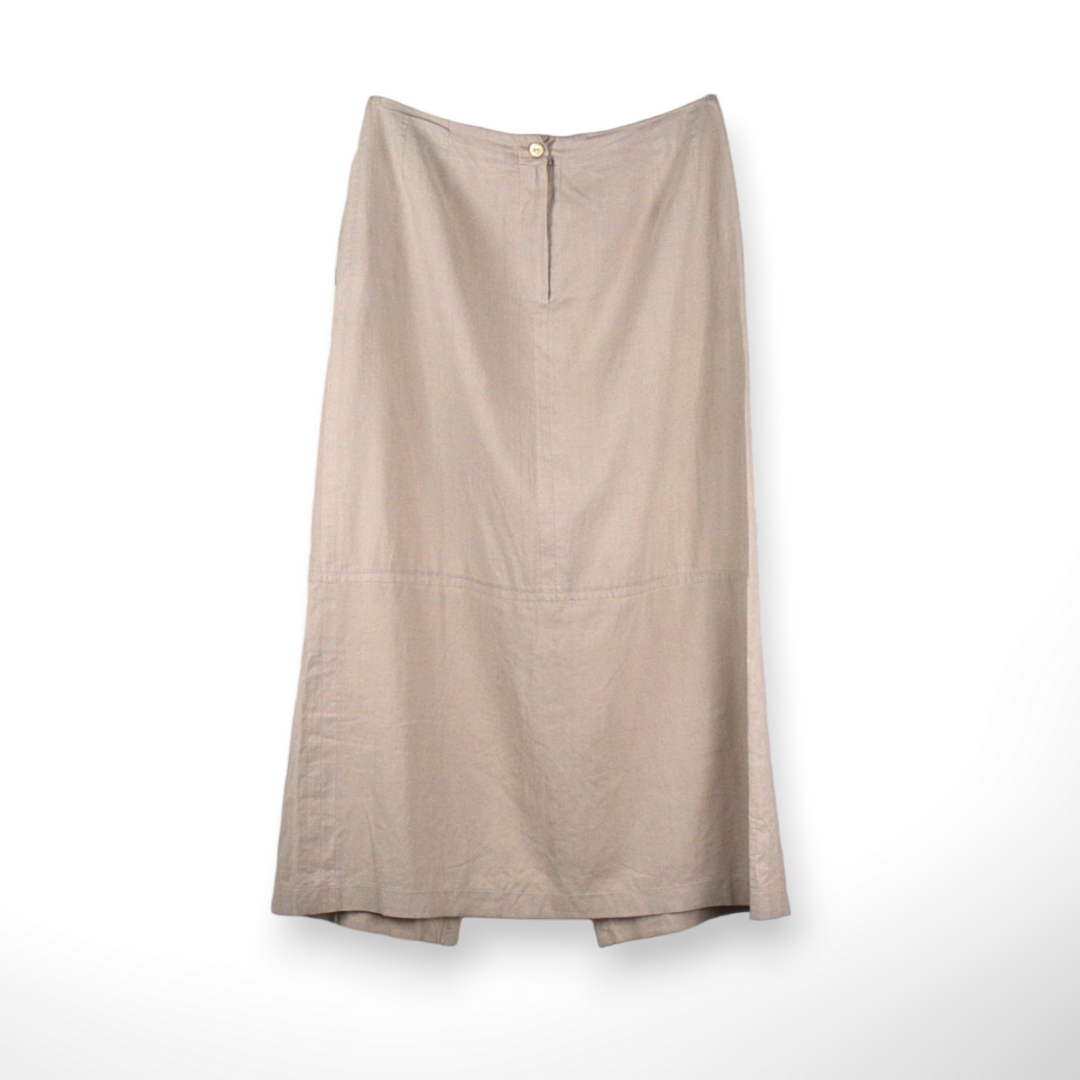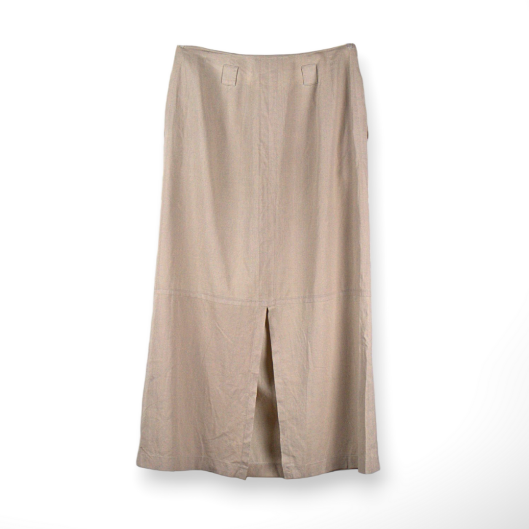 Jupe vintage des années 80-90 signée Martine Douvier. Modèle léger et légèrement ajusté, doté d'une fente arrière idéale pour les journées estivales.