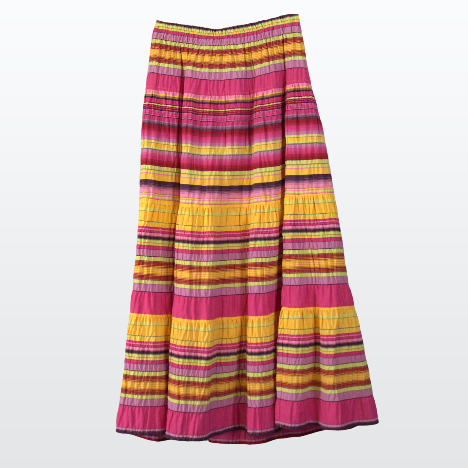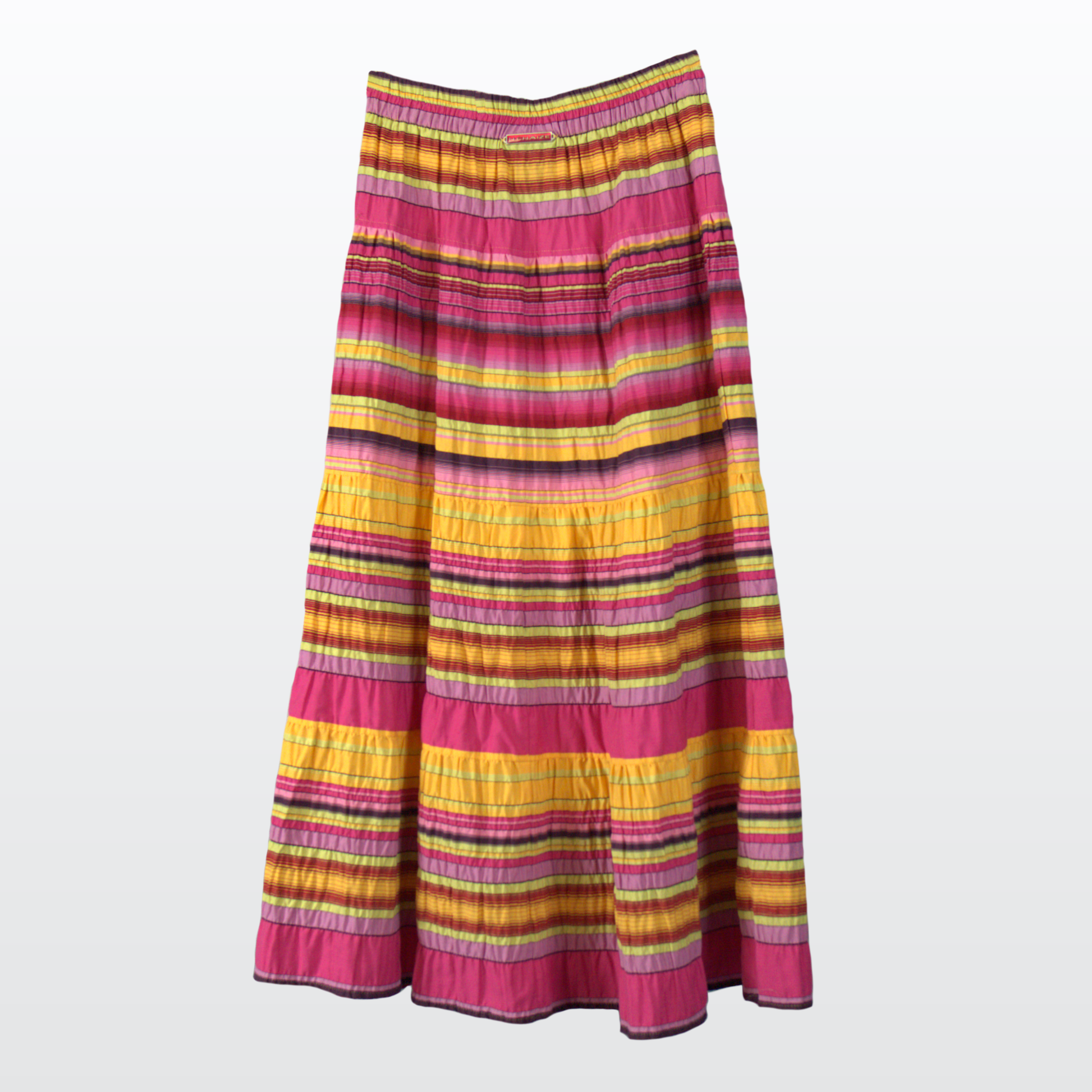 La jupe maxi Nathalie Chaize présente un motif rayé aux couleurs multiples, offrant un look frais et plein de vie.