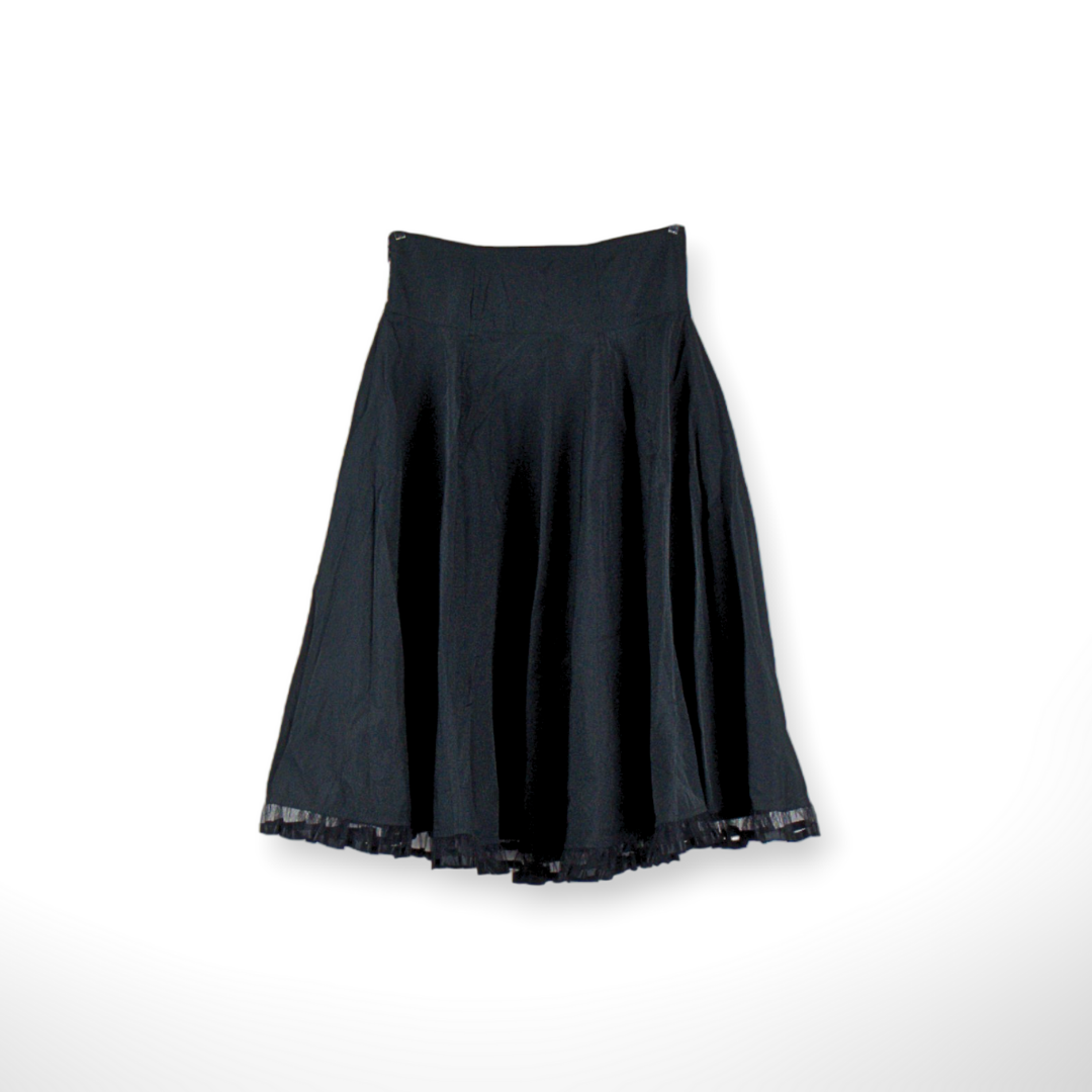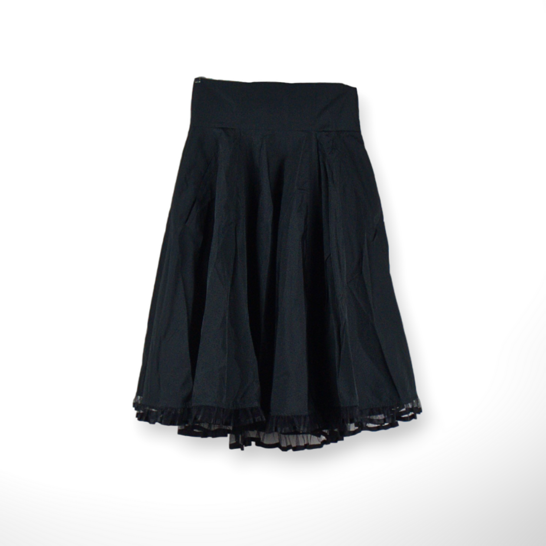 Cette jupe style tutu, cintrée à la taille, est dotée de poches pratiques et d’un délicat liseré en tulle au bas du jupon, apportant une élégance fluide à sa silhouette.
