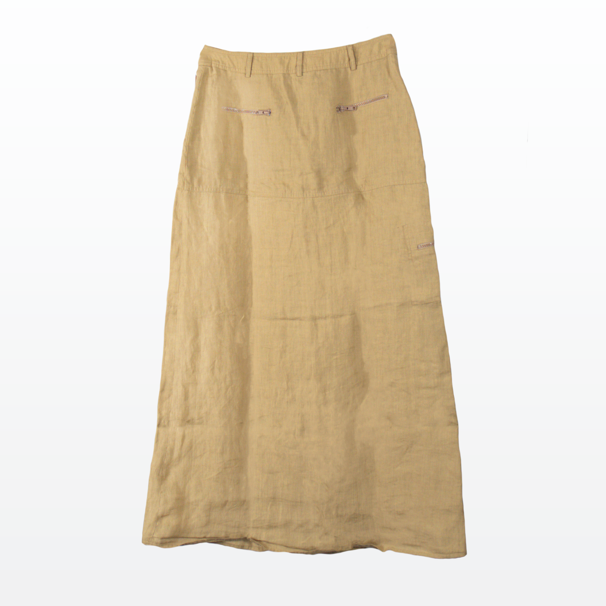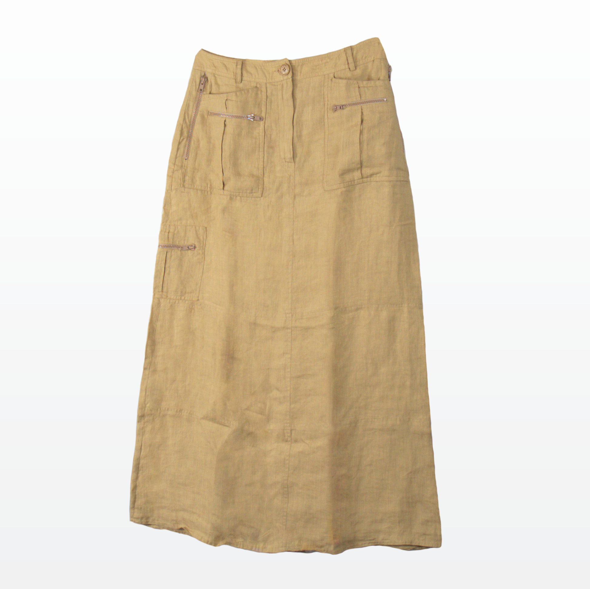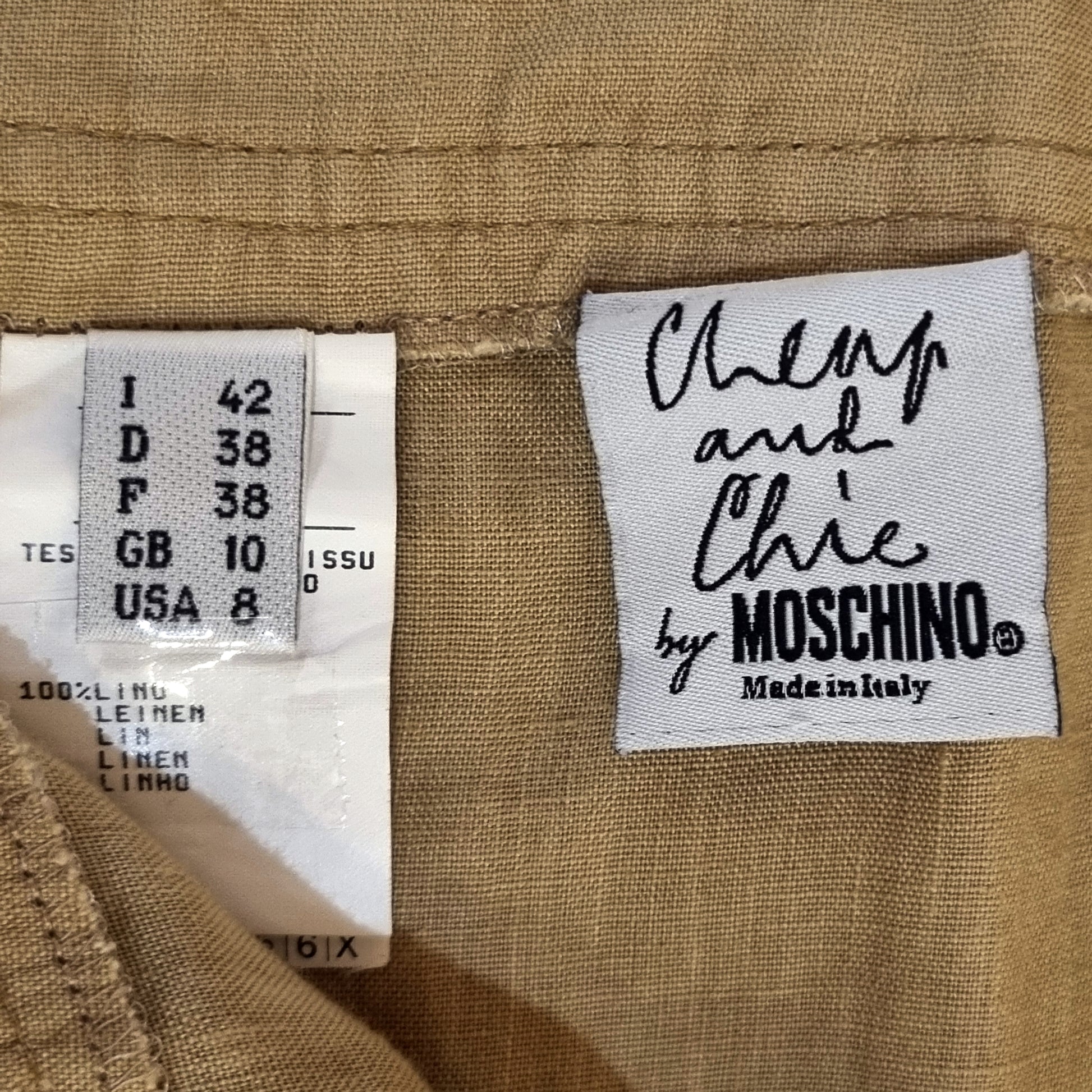 Cette jupe Moschino au style cargo se porte aussi bien taille basse que taille moyenne. Confectionnée entièrement en lin, elle est dotée de nombreuses poches pratiques. Légère et confortable, elle allie élégance et fonctionnalité pour un look tendance.