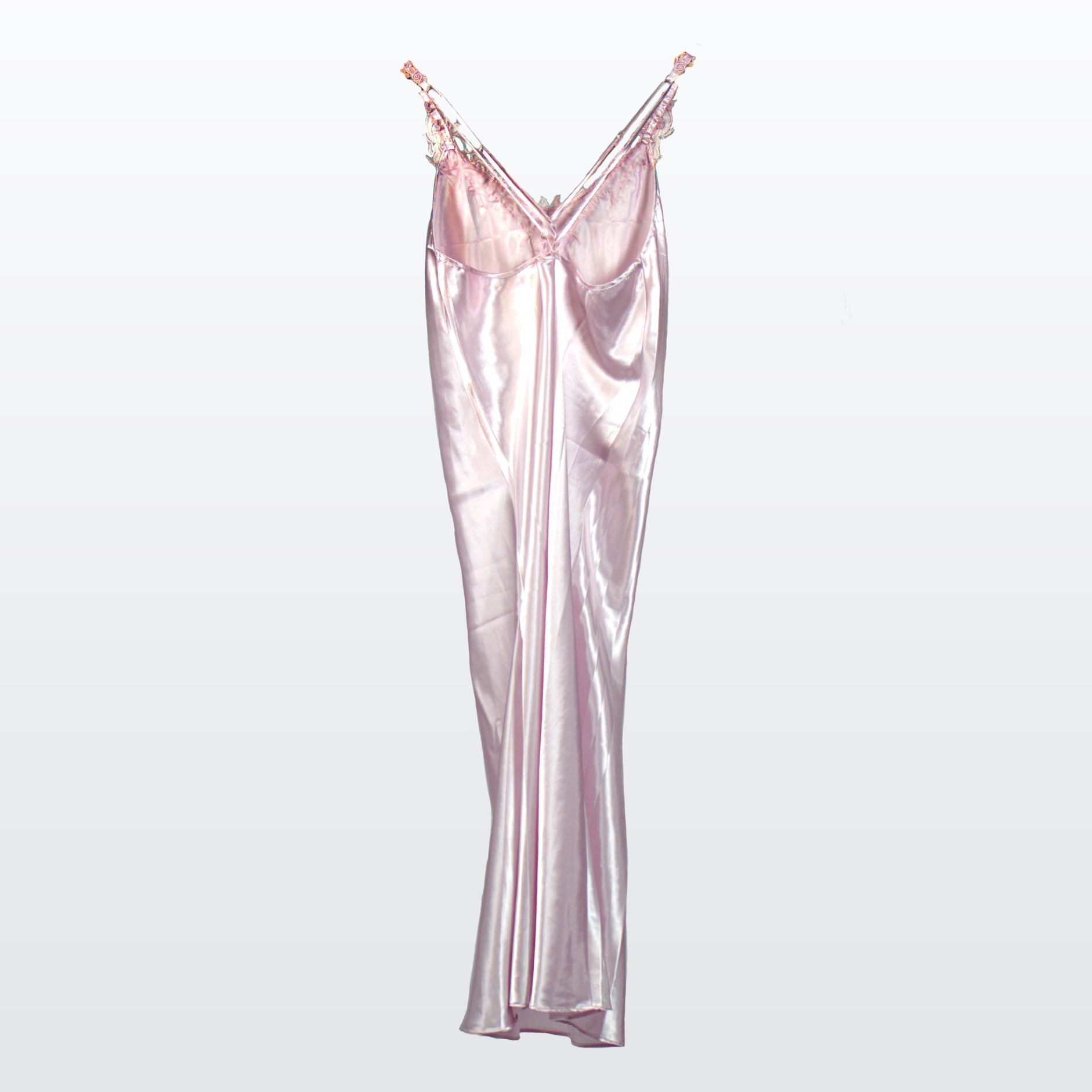 La nuisette Lila, ornée de bretelles croisées dans le dos et de broderies délicates au décolleté avec une finition satinée, se porte aussi bien de jour que de nuit.