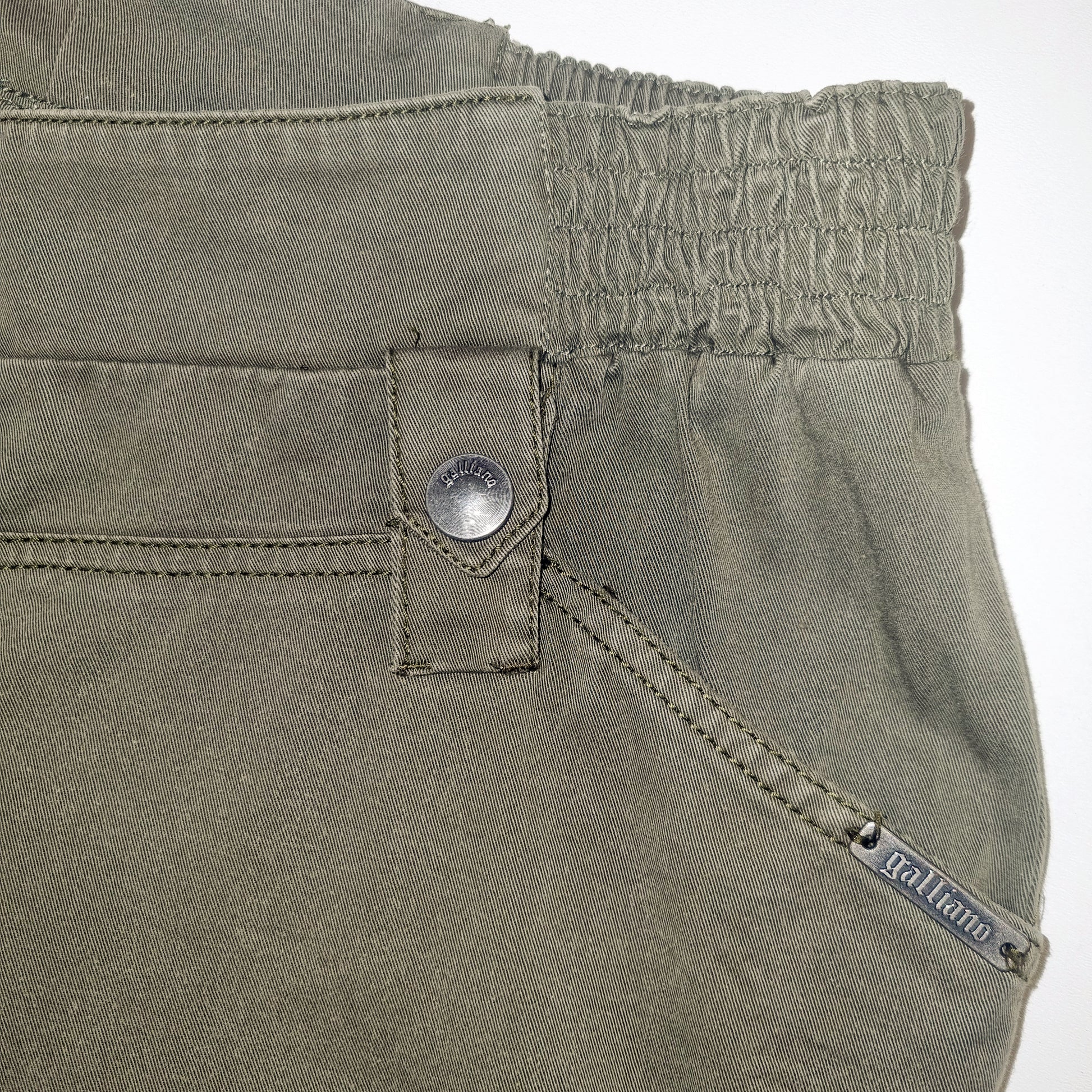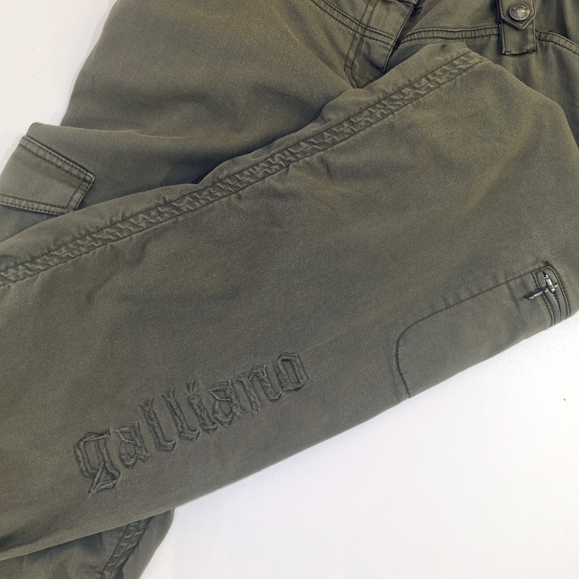 Le pantalon cargo John Galliano streetwear à taille basse se démarque par sa doublure intérieure iconique Paper news by Galliano, pour un look unique.