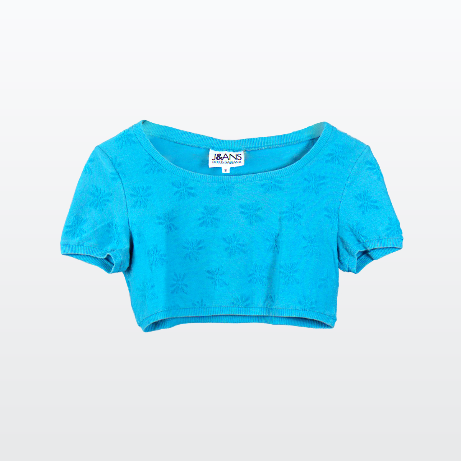 Crop top iconique signé Dolce & Gabbana, agrémenté d’un motif floral en jacquard.